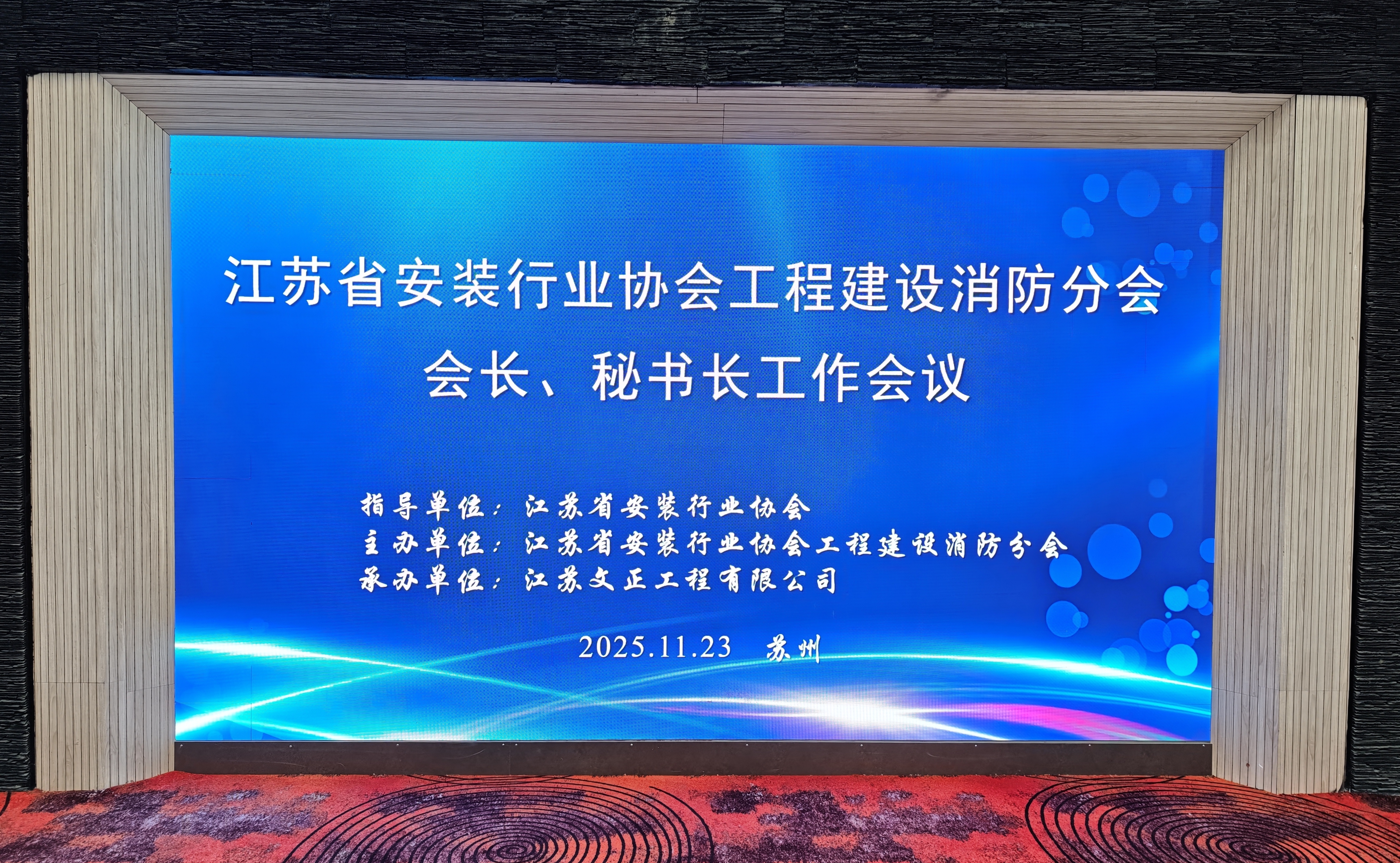 虽是初冬,但苏州城内暖意洋洋。2025年11月23日下午三点,江苏省安装行业协会工程建设消防分会第一次会议在苏州隆重召开。本次会议由江苏文正工程有限公司承办,江苏省安装行业协会工程建设消防分会领导、企业代表和业界精英齐聚一堂,共商行业发展大计。
